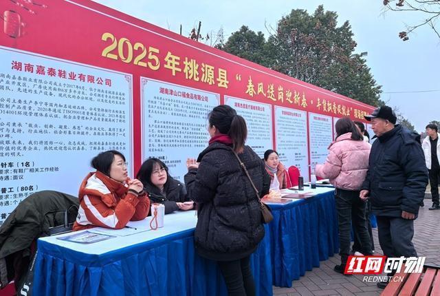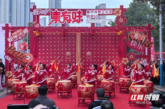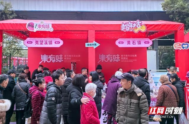现场热情氛围。红网时刻新闻常德1月18日讯(记者 黄刚 通讯员 郭靖)1月18日,集有味2025春节集市文化周活动桃源站活动在体育中心正式启幕。此次活动从2025年1月18日一直持续到1月27日,为期10天时间,过年赶大集满足居民一站式购物需求。现场,在凸显桃源地域文化特色的基础上与现代商业元素融合,既保留传统集市的烟火气,又展现新时代的商业氛围。如牛车河镇的野生蜂蜜、茶庵铺镇的茶叶、陬市镇的桂花糖等,通过集中展示各乡镇的特色农产品、手工艺品等,让游客一站式领略桃源各地的独特魅力。汇聚各类湖湘特色美食,包括臭豆腐、糖油粑粑、剁椒鱼头、湘西腊肉等经典美食,以及桃源本地特色小吃,如桃源擂茶、桃源酱板鸭、桃源米粉等。以桃花源为主题的书画作品、手工艺品、文具、服饰、饰品等,展现桃源独特的文化魅力。在非遗展示区,桃源刺绣、桃源木雕、牛车河打粑粑、擂茶等众多本地非遗项目,让游客近距离感受非遗的魅力。活动现场,还邀请桃源县内各类有招聘需求的企业设立展位,展示企业形象、招聘岗位信息,为返乡人员提供就业创业政策咨询服务。