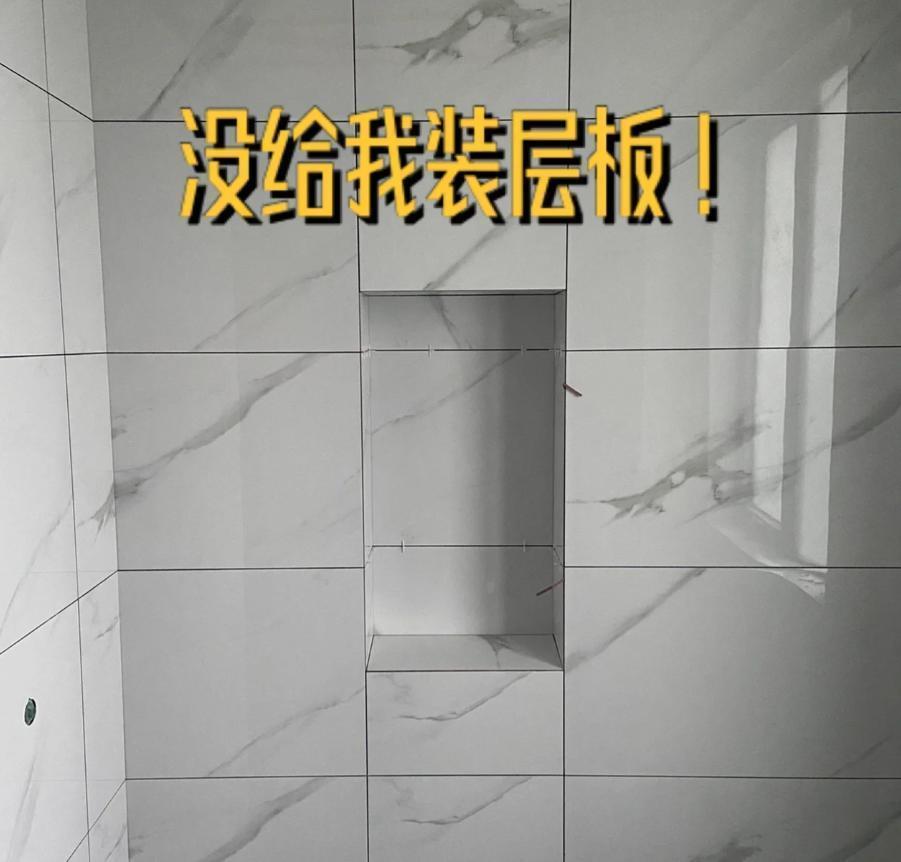 网友@陈怀安T,就是因为忘了和师傅沟通,师傅偷懒没给壁龛安装层板,导致壁龛既难看利用率又低。